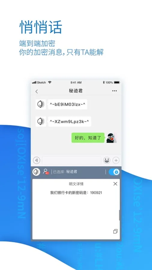使用端到端加密技术,让您和您的朋友通过任意通信软件,实现交流信息的加密和解密。