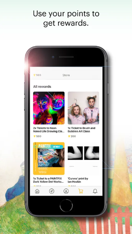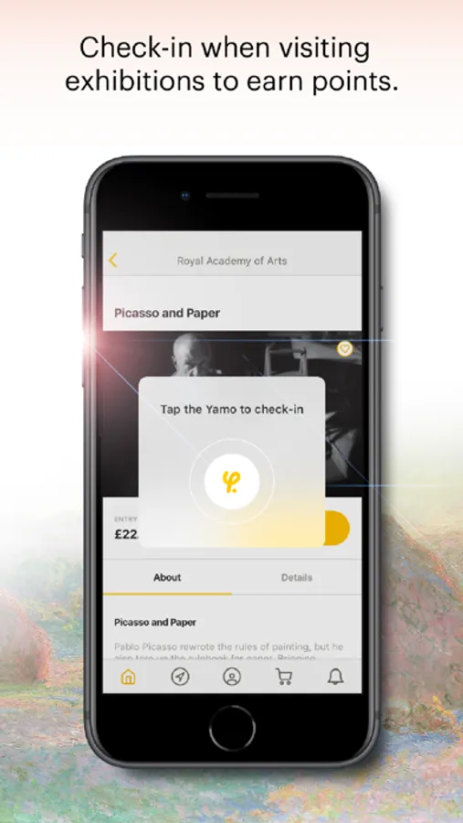 Check in and collect points (Yamos) whilst visiting galleries, which can be redeemed in our in-app gift shop for prints, painting, jewellery and momentos.