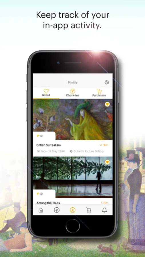 - Get rewarded for visiting galleries by checking-in to exhibitions in the app.