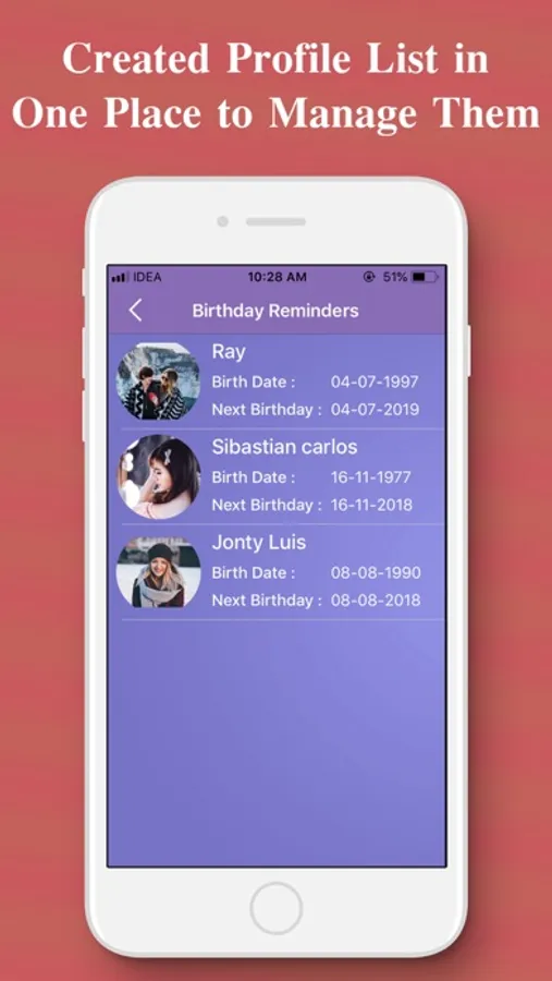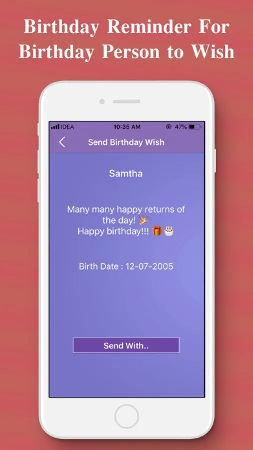 On this features you can set birthday reminder for special person to wish them on Birthday.