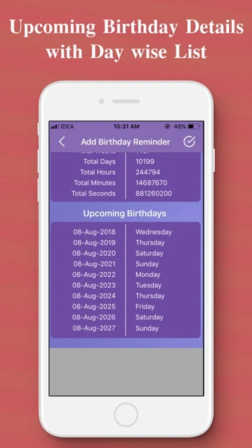 * Easy to wish Happy Birthday when the perfect birth date is coming.