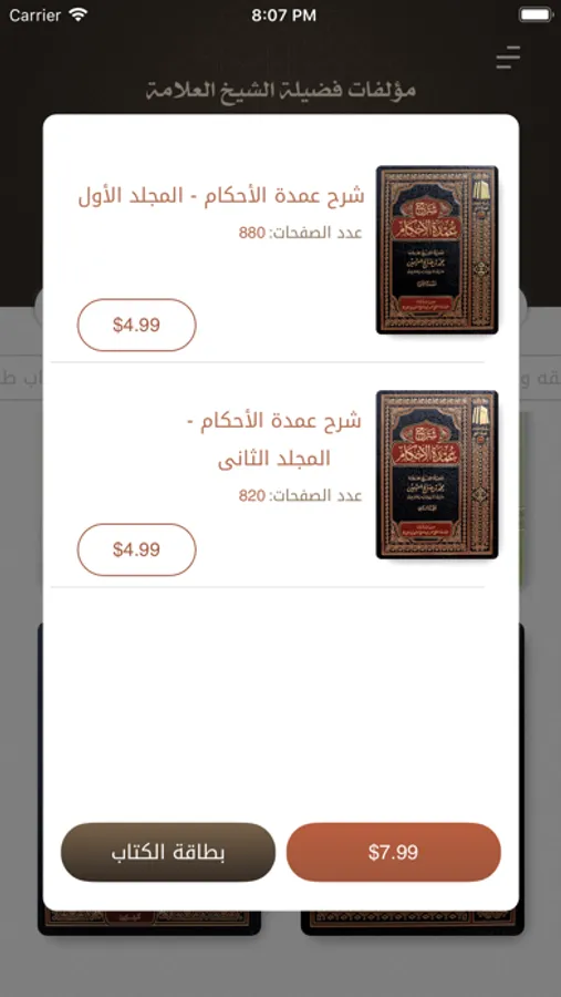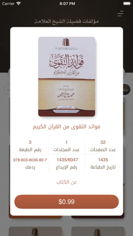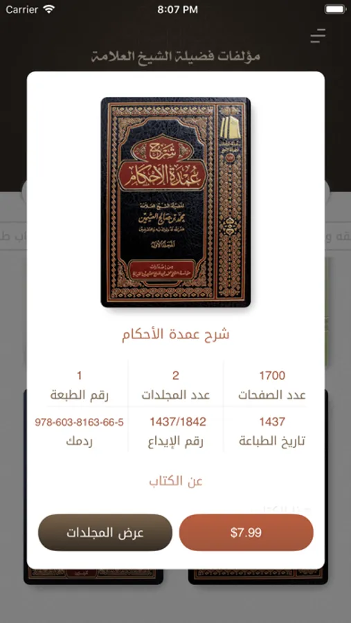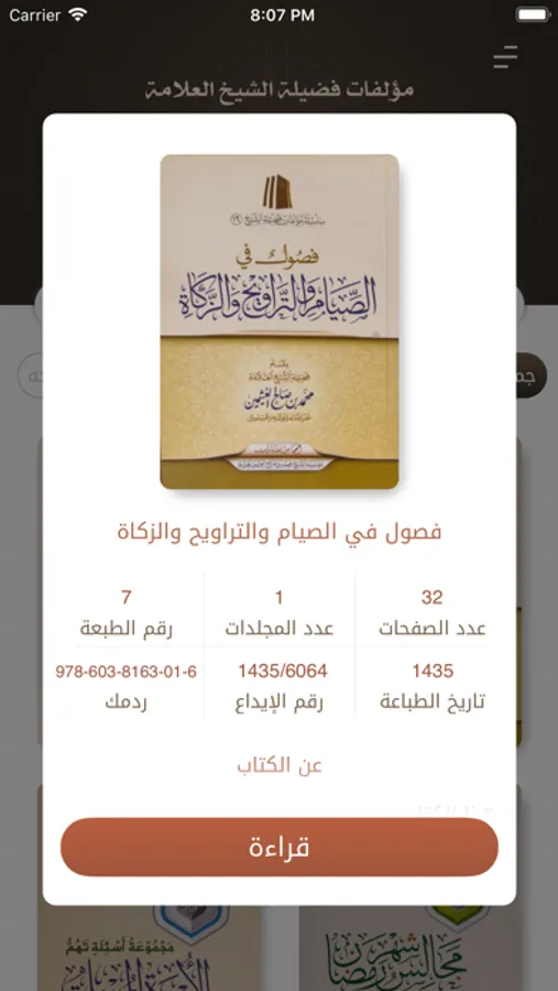 يتيح التطبيق إمكانية تصفُّح بطاقة خاصة بكل كتاب بها البيانات الخاصة به.