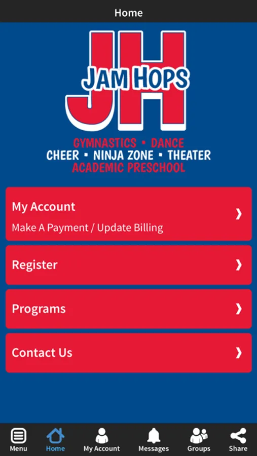 The Jam Hops app allows you to register for classes, parties and special events. The events calendar, social media links, and contact information are also easily accessible from the app.