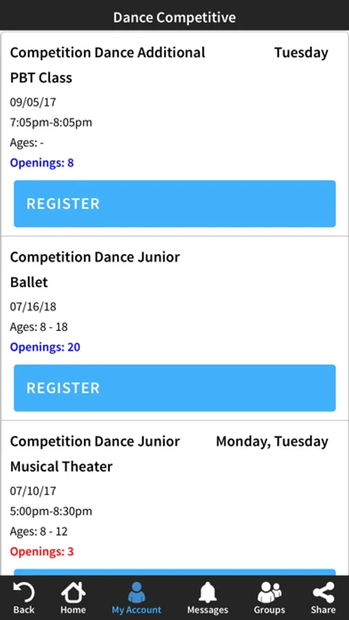 - Have a class in mind? Search by program, level, day, and time. You can register or even put yourself on a wait list.