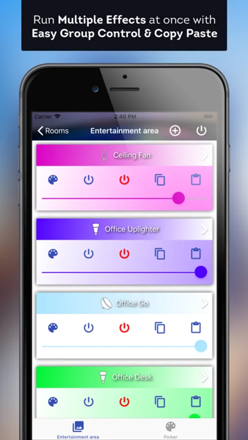 Create your own custom photo ambiences and enhance the colors with our "Tweaks!". Photo ambiences are stored on the Hue bridge with our OmniScene technology, meaning you don't have to recreate the ambience for different rooms. Not only that, they are accessible from all your devices running hueDynamic.