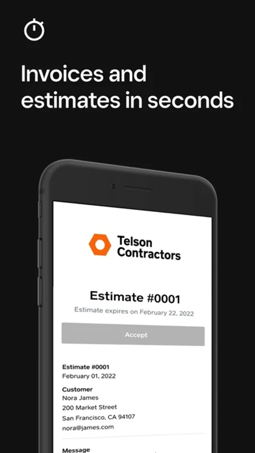 Whether you are sending a quote to confirm your next freelance job, requesting a deposit for a custom order, or billing for your contractor hours, Square Invoices is the all-in-one app for your payment and workflow needs. Download and set up your account in just minutes.