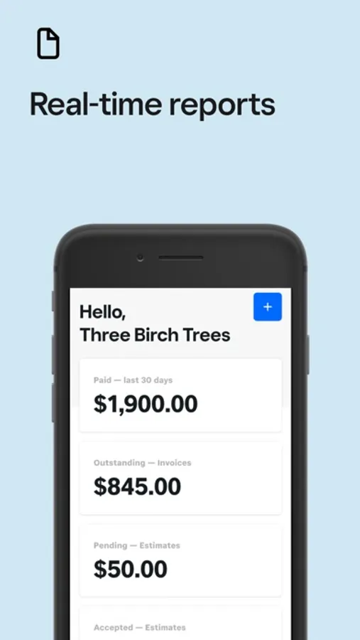 Send professional invoices and estimates in three simple steps: just enter your customer’s email, the amount, and hit send. Customise the look and easily attach photos, contracts, or receipts.