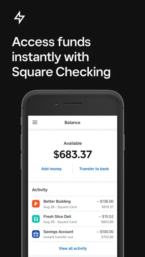 Access your funds in real-time with the free Square Card or deposit instantly into your bank account for 1.75% of the deposit amount. Next business day deposits come standard.