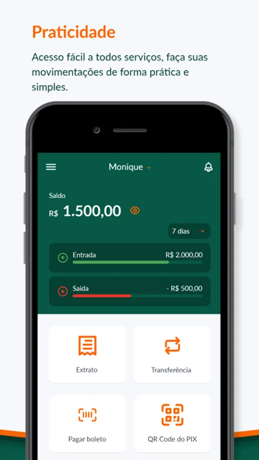 É só abrir o app e utilizar um dos diversos serviços, transferência interna, TED, recarga de celular, e muito mais serviços.