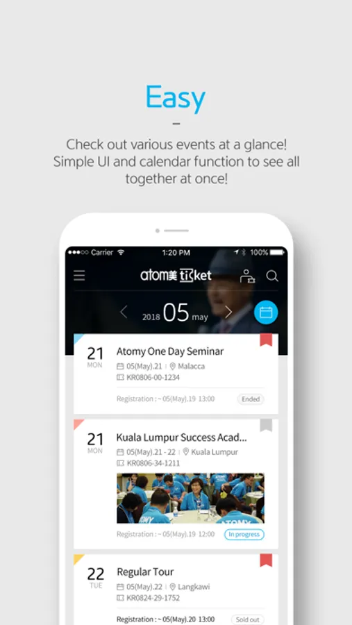 Atomy Ticket - an app that contains information of various events including global Atomy seminars and workshops.
