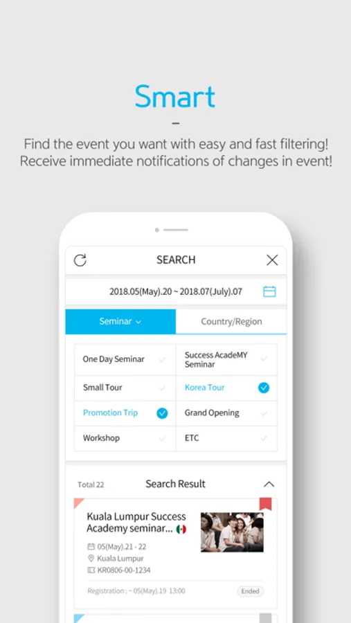 Find the seminar you want with easy and fast filtering!
