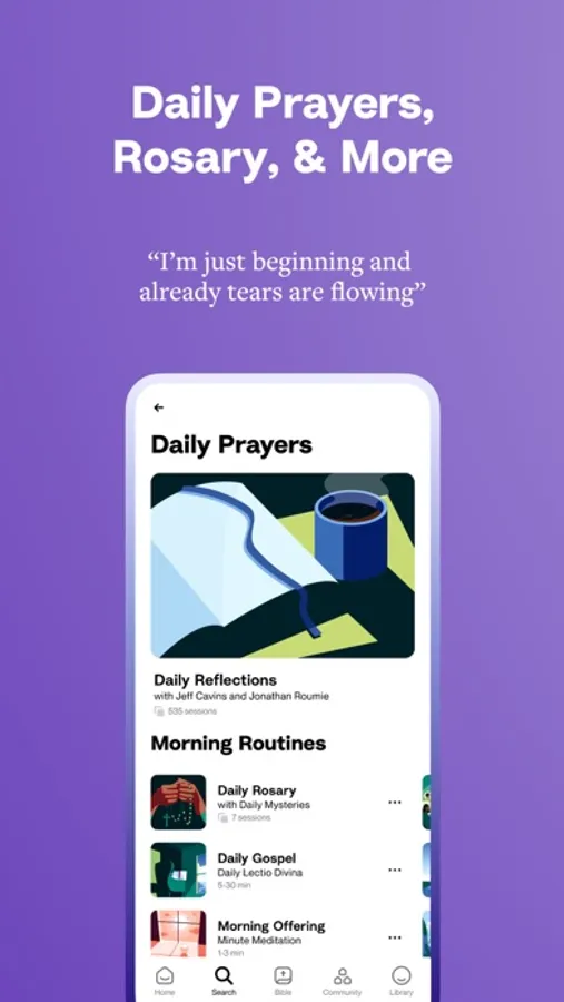 Users can access our daily prayers (including the rosary) and the 9-day Intro Prayer Challenge for free.