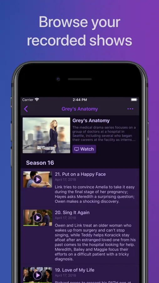 • Pick your favorite shows or teams, and choose to record all or just their new airings.