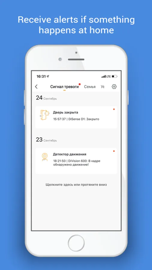 Get event notifications right in the app to always be aware of the data received from the devices.