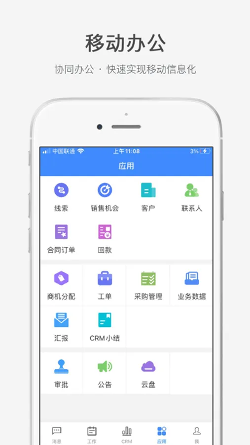 云拓CRM,专为中小企业打造的数据化智能办公平台,帮助企业从流程审批、任务协同、进度汇报、统一文档、人员综合管理等方面进行提升,