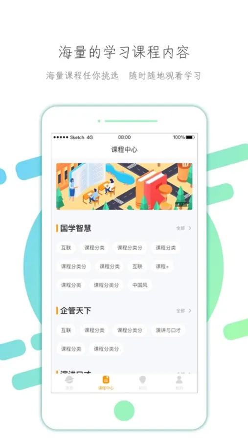 1. 海量课程,随时观看:50万+学时在线精选课程,涵盖企业管理、市场营销、个人成长、婚姻家庭、国学养生、子女教育等领域,随时随地观看学习,海量内容任你自由选择;