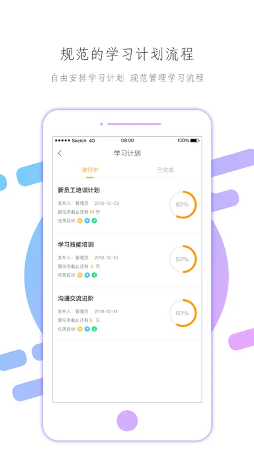 2. 学习任务,实时跟踪:根据培训学习计划快速创建学习任务,指派人员进行学习;实时跟踪学习进度,监督学习全过程;