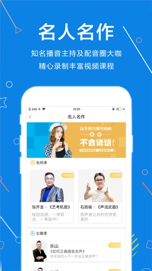 知名播音主持及配音圈大咖精心录制丰富视频课程,帮助你在声音学习的道路上少走弯路。