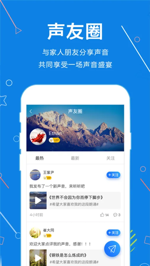 在特别的日子里,用最动听的声音送去真挚的祝福。通过分享声音的方式与家人、朋友共同享受一场声音盛宴。