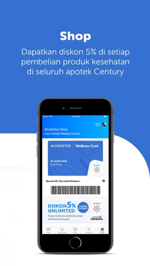 Tunjukkan aplikasi Alodoktermu untuk dapatkan diskon 5% unlimited setiap transaksi belanja di Apotek Century dan Apotek Generik seluruh Indonesia. Nikmati tambahan cashback 30% dengan pembayaran dompet digital terpilih.