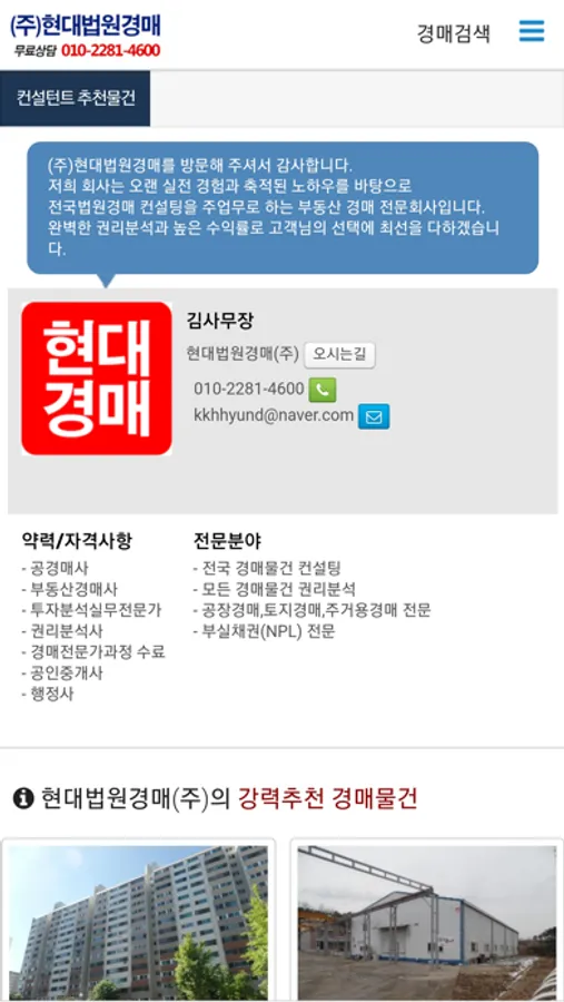 현대법원경매 경매정보을 스마트폰으로 편리하게 전국의 모든 경매물건을 편리하게 보실 수 있습니다.