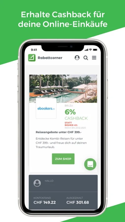 Wenn du unsere App für deine Online-Einkäufe in einem unserer Partnershops nutzt, erhalten wir eine Provision, die wir dir mit dir teilen. Sobald du deine Bestellung abgeschlossen hast, erscheint die Transaktion und dein Cashback-Betrag in deinem Benutzerkonto. Ab einem Gesamtbetrag von CHF 20.- kannst du dir dein Geld auf dein Bank- oder PayPal-Konto überweisen lassen. Ganz einfach und unkompliziert!