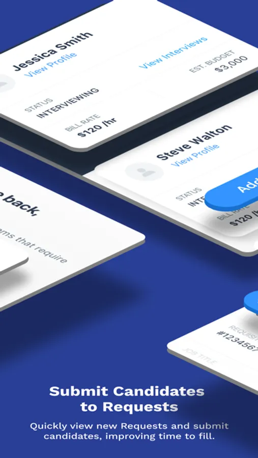• Powerful search functionality enables search by request or engagement number, candidate or worker name, or job title