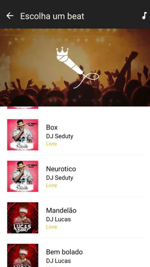 MÚSICA - Com o BatalhaFUNK, você tem acesso a um universo de beats exclusivos. Escolha o seu e grave um som. Compartilhe em suas redes sociais ou com amigos dentro do app