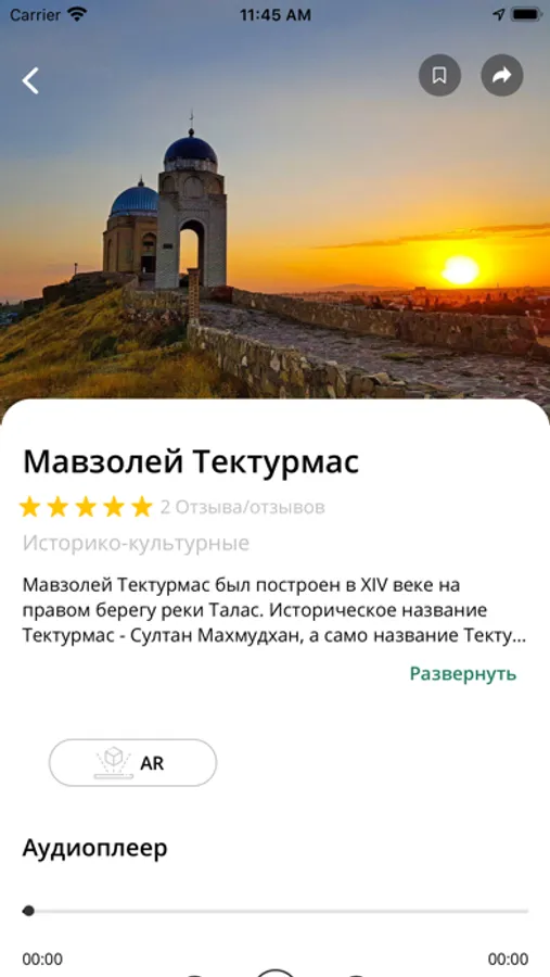 С помощью приложения «Тарихи Жол» вы можете окунуться в мир историко-культурных мест в познавательном формате на пяти языках, которая включает в себя :