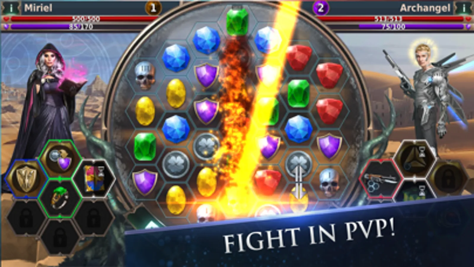• It is a unique RPG puzzle game, where you play turn-based Match-3 duel on the nice hexagonal board filled with skulls, gems & jewels.