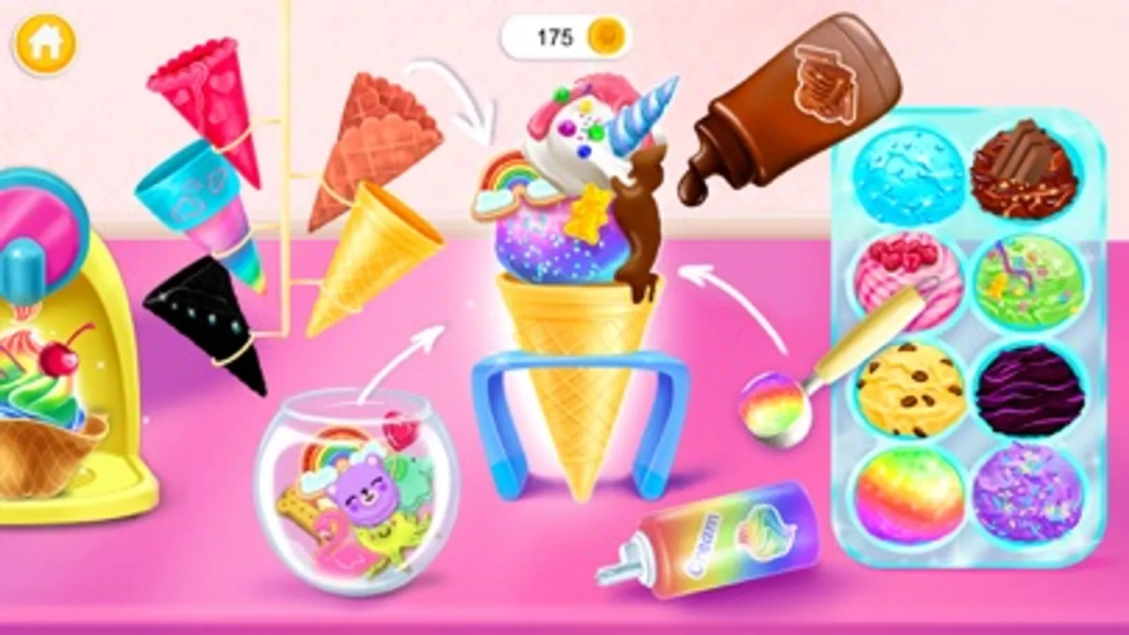 Fluff the Fox wants her ice cream to be tasty, but also super pretty! Choose a rainbow, pink or pitch black cone, add colorful ice cream scoops and fruit, chocolate or even rose topping! Decorate it with the cutest rainbow, unicorn or star cookies!