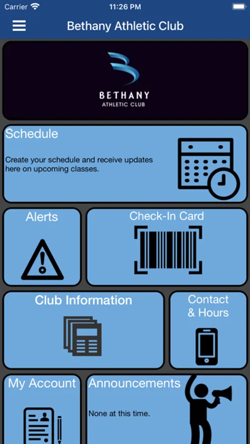 Mobile App for use by members of the Bethany Athletic Club. Club members may access their statements, view class schedules, keep current on events at the Club and much more.