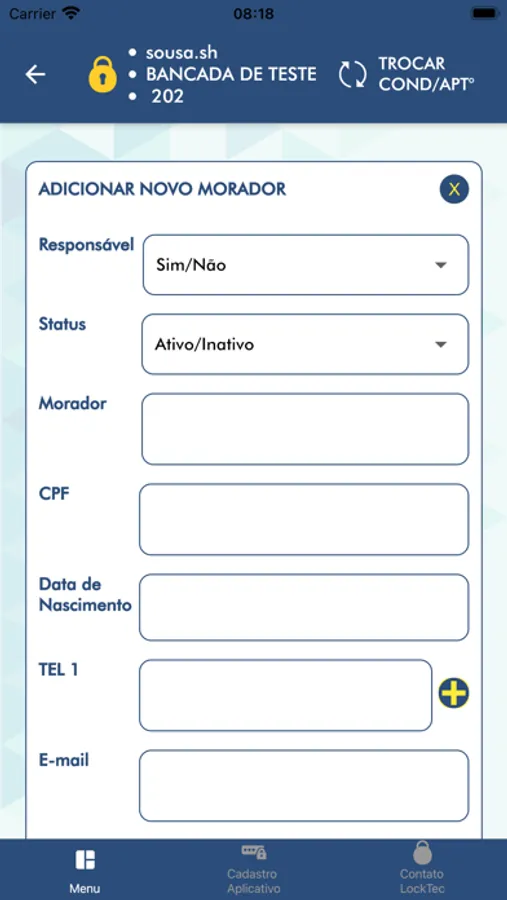Caso o MORADOR possua o vínculo de responsável pelo imóvel, informado no ato do cadastro inicial no sistema de Portaria Remota Locktec, este poderá editar todos os dados, de todos os usuários e veículos cadastrados em seu imóvel, além de inserir novos cadastros.