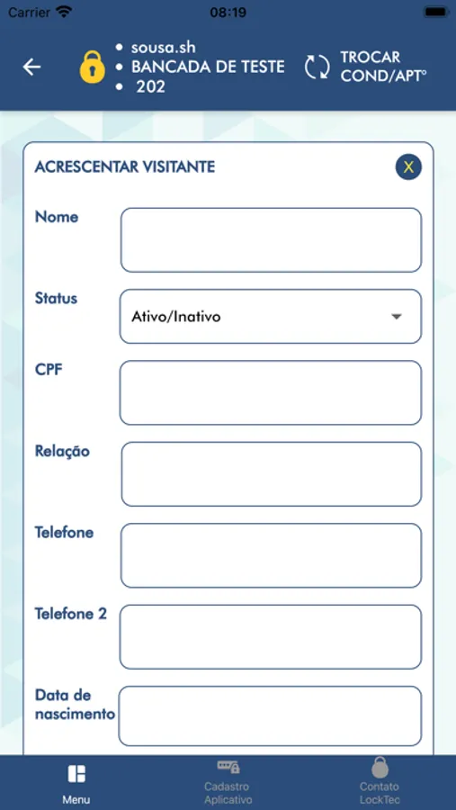2. O usuário terá acesso a todos os dados cadastrais, de todos os usuários cadastrados em seu apartamento (divididos nas categorias MORADORES, VISITANTES e FUNCIONÁRIOS), bem como dos veículos vinculados.