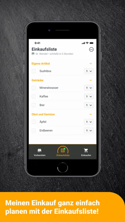 - Einkaufsliste, einfach sortierbar für Ihren Laufweg im Markt