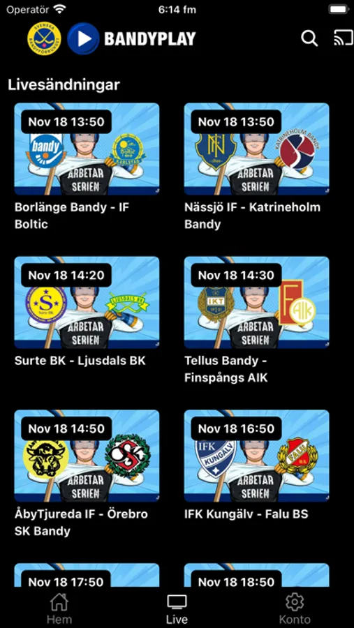 On Bandyplay, you'll see livestreamed bandy as well as replays, highlights and interviews from all teams in Elitserien in Bandy.