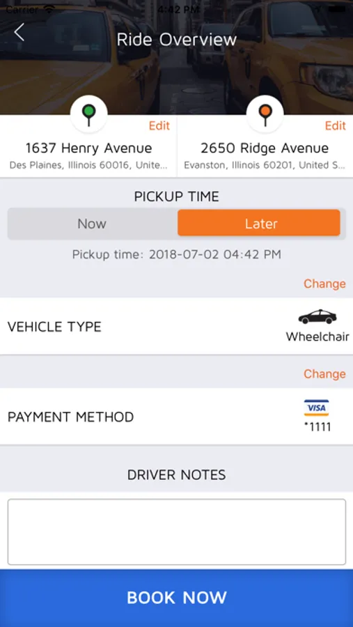 You can plan and reserve your rides in advance or on-demand. Reserving in advance means you’ll always have a dedicated vehicle at the exact time you need it. We also strive to provide on-demand rides where possible. If you would like to book a ride right now, call our customer service center at 847-792-1212 or get an ETA for the next available vehicle using the BriteLift app.