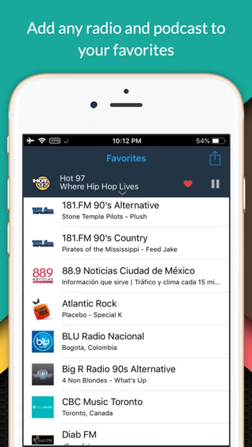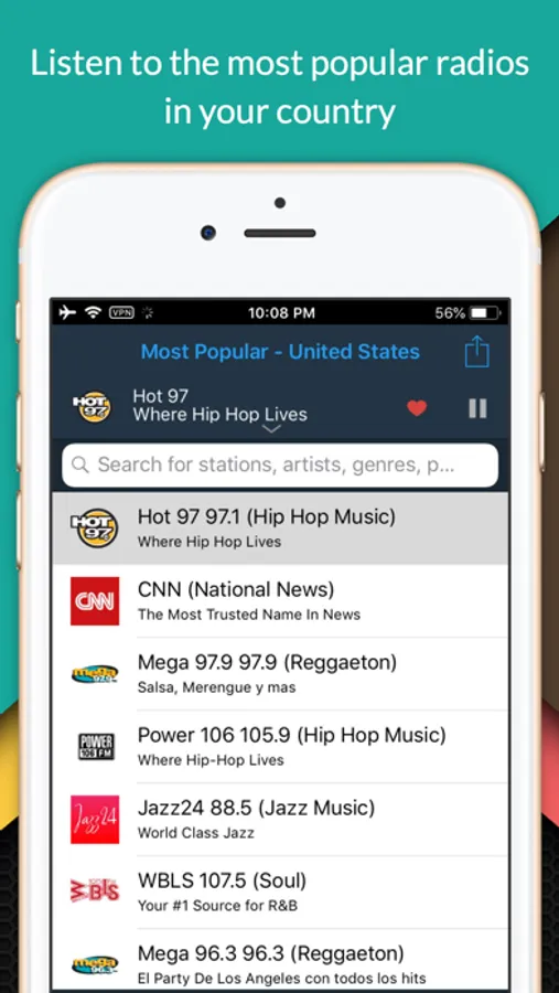 - Play in background allowing you to do other tasks on your mobile while you listen to the best radio.