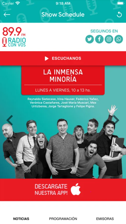 Radio Con Vos 89.9 reúne a los profesionales más destacados de los medios de comunicación para divertirte, informarte y entretenerte.