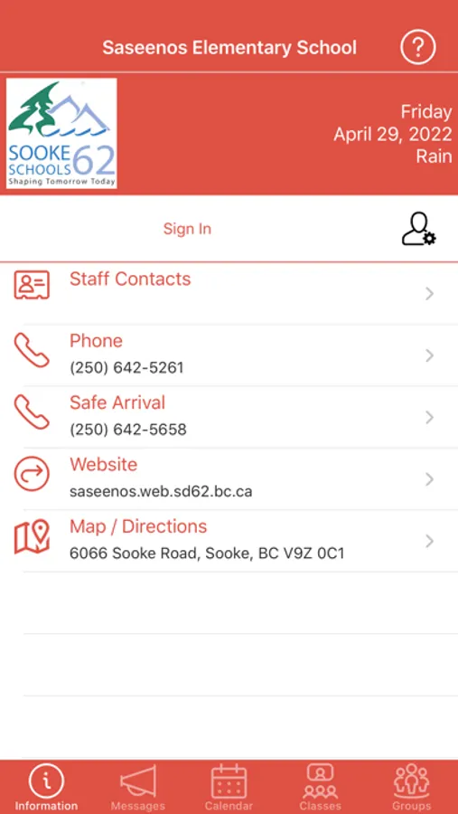 * Conveniently e-mail, phone, or navigate to the school, or reach the website or social media.