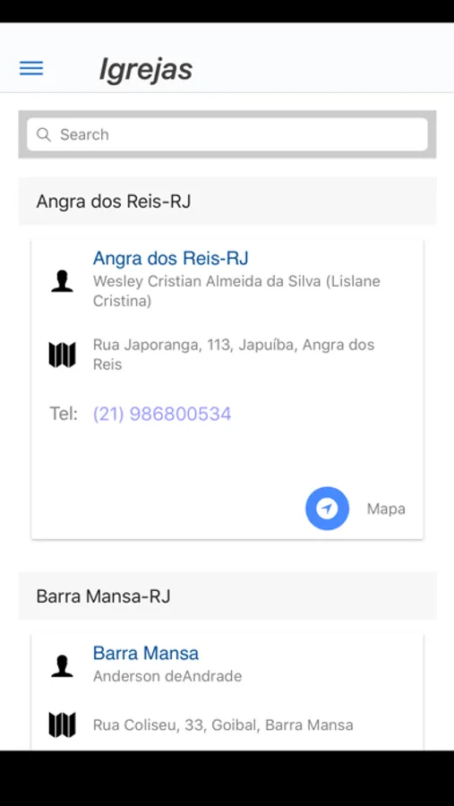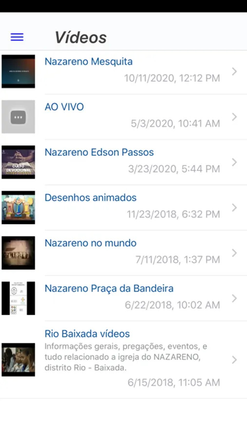 Lista de vídeos postados pelas igrejas( pregações, testemunhos, eventos, desenhos, etc..).