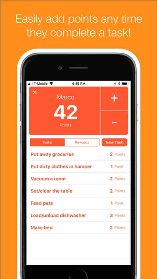 - Create a tile for each of your kids and easily add points any time they "do the chores"