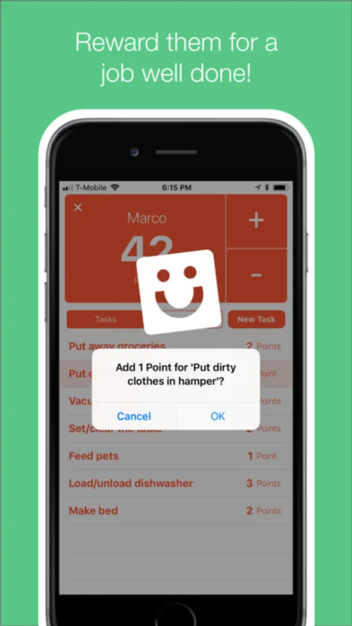 - Add task to each kid and give them points every time they complete one of their assigned tasks