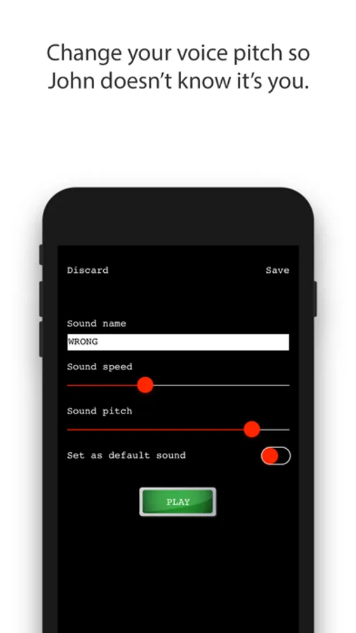 Record your own voice and then you can change your voice pitch to make it sound higher or lower - in one word, more funnier! You can select the sound as default to play it on the big red button.
