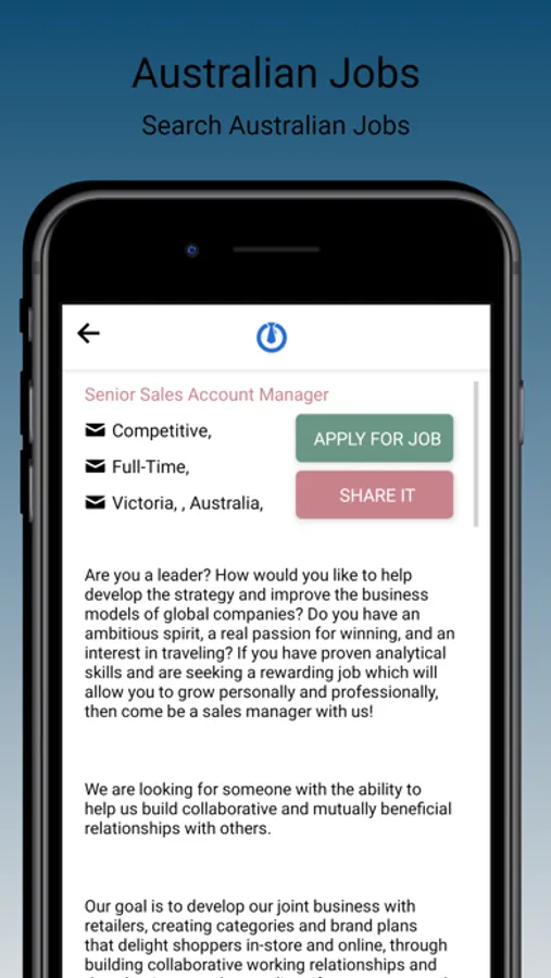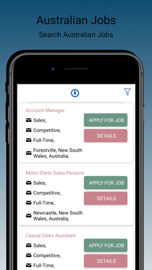 Australian Jobs App is free and there is no need to register to use it. Our key features of application are