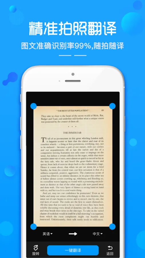 2,拍照翻译:随身拍照片识别翻译、相册选图翻译任意选;拍照一键翻译,旅游出行、外语学习,高效率翻译利器。(支持热门语种:中英日韩泰越、德法意俄葡西等共计19个语种)