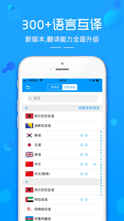 3,语音翻译:最新人工智能技术,高分辨率人声识别转为文字翻译!出国旅游/外语学习必备翻译助手。(支持热门语种:中英日韩泰越、德法意俄葡西等共计26个语种)