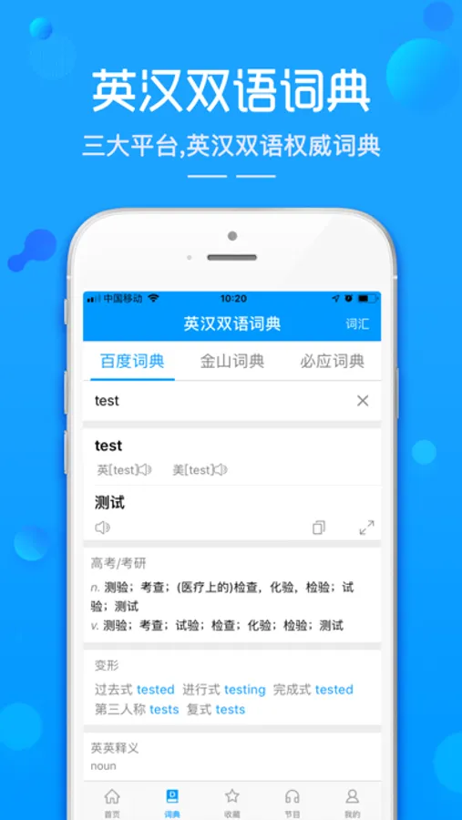 4,英汉词典:整合百度词典、金山词典、必应词典,英语学习必备权威词典翻译。