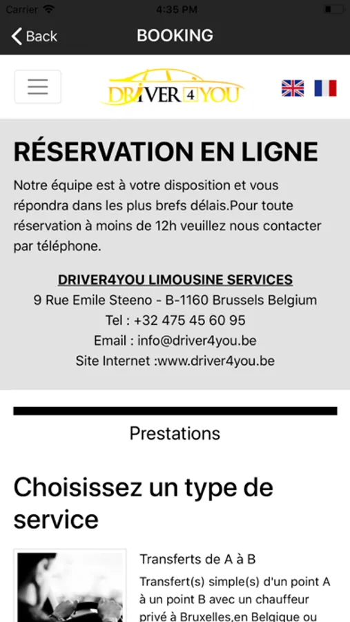 Ou par mail :info@driver4you.be
