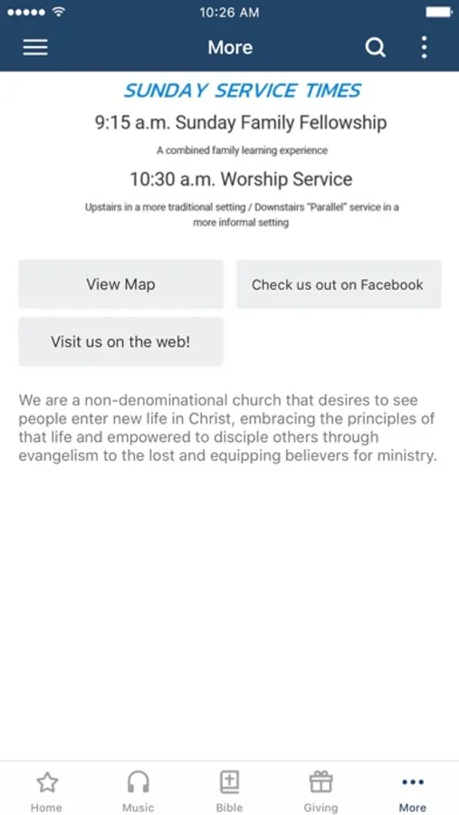 We are a non-denominational church that desires to see people enter new life in Christ, embracing the principles of that life and empowered to disciple others through evangelism to the lost and equipping believers for ministry. The app is designed to better engage our congregation, as well as those just wanting to know more about us! Download the app to stay up to date with events, get information about services and ministries, and have access to live-streamed and previous sermons!